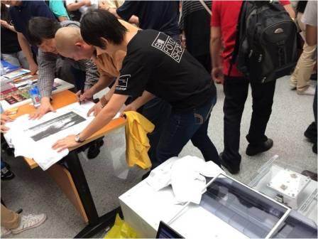 國(guó)際攝影大師楊延康老師在運(yùn)源代理Epson F2080 T恤印花機(jī)打印的自己作品上簽名,并連連夸贊設(shè)備的優(yōu)秀表現(xiàn)