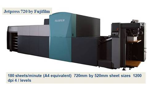 平張高速印刷機(jī)主要有大日本網(wǎng)屏的TruepressJetSX,富士膠片的Jetpress720,他們主要是替代傳統(tǒng)的凸版印刷機(jī),相比于后者,有更高的印刷質(zhì)量,以及批次之間、同一批次的不同印張之間的一致性。