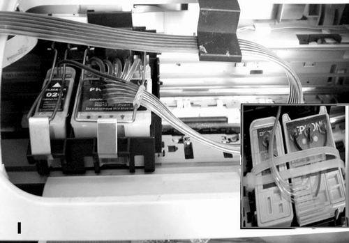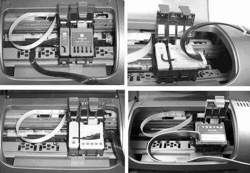上面提到的連續(xù)供墨各品牌產(chǎn)品基本上都是“傻瓜式”的安裝辦法,按照說明書操作即可。但是,很多初次接觸的用戶過不了這一關(guān),因為它并不是想象的“如安裝墨盒一樣簡單”,難點就在于墨盒芯片對位、排管的具體走向和固定。