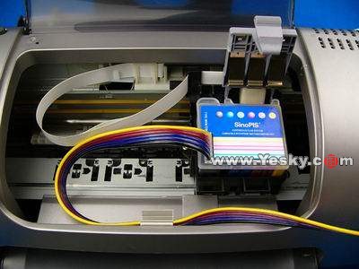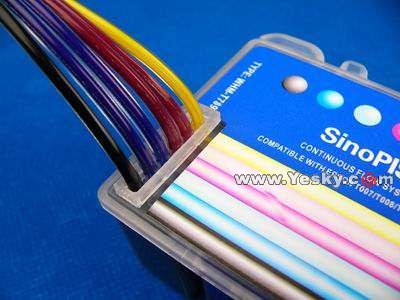 無(wú)海綿墨盒配以硅膠管線和各色外墨盒蓋,組成連續(xù)供墨系統(tǒng)的內(nèi)部部分,當(dāng)然也少不了永久長(zhǎng)效芯片。