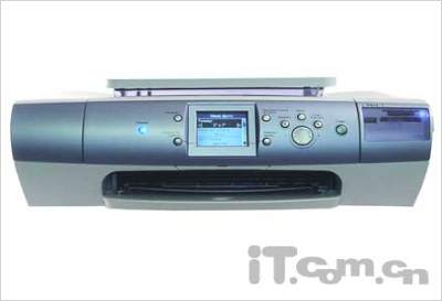 愛普生 Stylus Photo R310,它是一款全面配合數(shù)碼相機的照片打印機,在外型上相對于前文介紹的那款HP機型的確龐大了不少,不過在功能性上也有增加了許多,這也是該款照片打印機的一大特色。它可以脫離PC進行獨立照片打印,共有獨立插卡、有線、紅外或藍牙無線三種照片輸入方式。