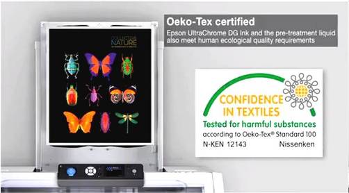 第三:安全可靠:愛普生活的色彩DG涂料墨水通過了Oeko-tex Standard 100的第一級別認(rèn)證(Report no.N-KEN12143),可以用來制作嬰兒及倆歲以下兒童服裝的織物,原材料和附件,令經(jīng)營者可以放心的生產(chǎn),令最終用戶可以安心的使用。